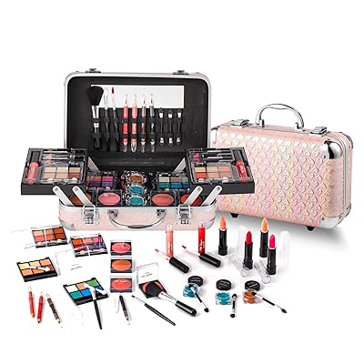 Hot Sugar All In One Makeup Set for Teenager Girls, Full Makeup Kit for Beginners Includes Eye Shadow Palette Blush Lip Gloss Lipstick Lip Pencil Eye Pencil Brush Mirror Pink Heart
